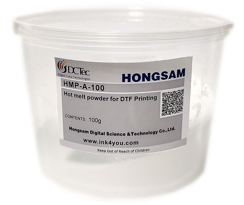 Белый термоклеевой порошок для DTF печати. Порошком-клеем засыпается пленка с предварительно напечатанным рисунком.